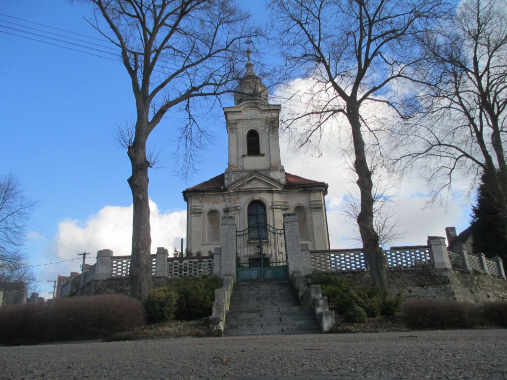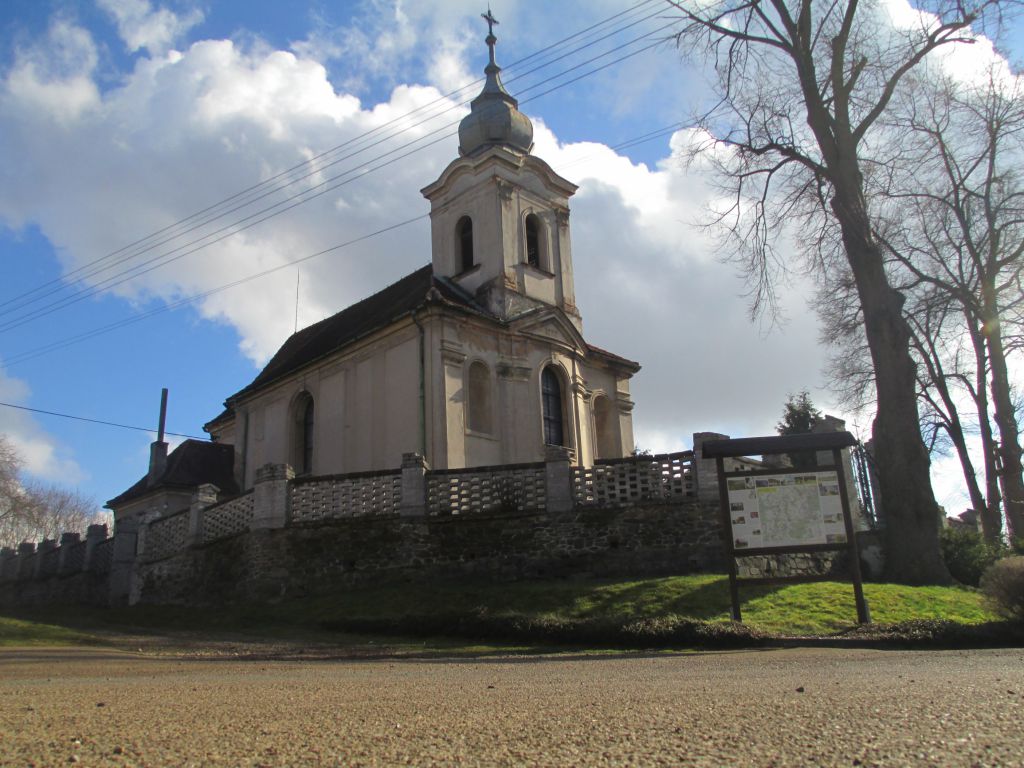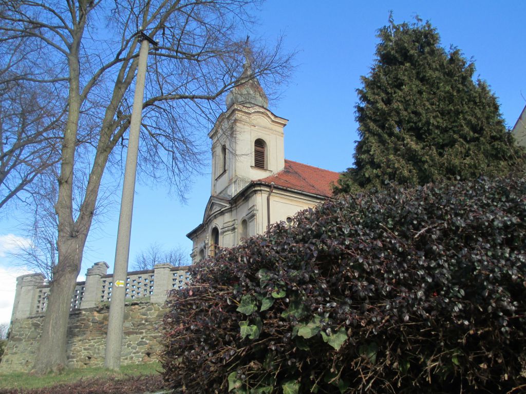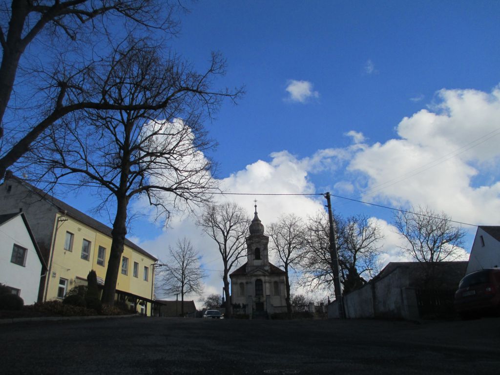 Kostel Svatého Kříže v naší obci v zimním období.